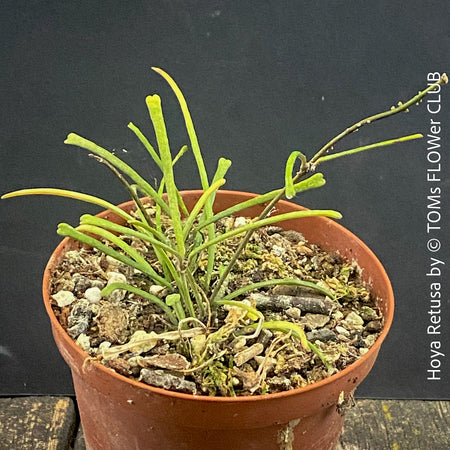 Hoya plants have a climbing habit and can grow up to several meters in length. Their leaves are typically oval-shaped and are thick and waxy, with a glossy sheen. Hoya plants are known for their distinctive leaf variegation, which can range from solid green to mottled or speckled patterns.