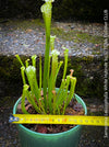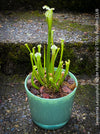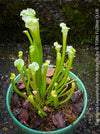 Organically grown at TOMs FLOWer CLUB, this established specimen is planted directly into a clear glass vase (Ø 14 cm, height 13 cm) without a drainage hole, allowing for a consistently wet substrate – exactly what this bog-loving species prefers. It's potted in a nutrient-poor, peat-based carnivorous mix, with no fertilizer used. Only use rainwater or distilled water – tap water is not suitable.