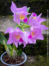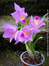 Cattlea, hybrid form, beautifully light pink-violet flowering, offered plants come from own propagation - devision o the mother plants; not overfertilised therefore robust & top healthy (100% organic quality before quantity!), not hardy, also suitable for light/half shade locations (please avoid direct sun), planted in self-mixed permeable orchid substrate (the next 2-3years the plant does not need to be repotted); make the plant happy with regular sprays with (rain) water; enjoy your new light pink-violet flowering Cattlea orchid!