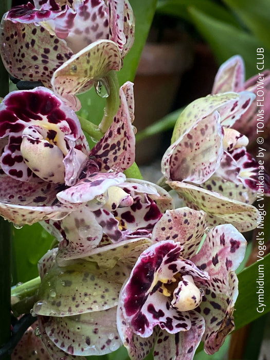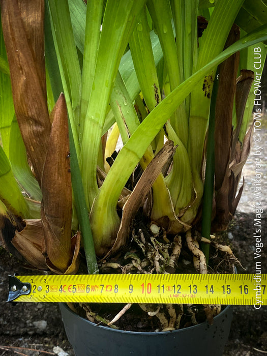 Cultivated for its robust growth habit, Cymbidium Vogel's Magic 'Waikanae' thrives in cooler climates and prefers bright, indirect light. It benefits from a well-draining orchid mix and regular feeding during the growing season. Proper care encourages annual blooming, typically in late winter to early spring, adding a touch of elegance to any collection.