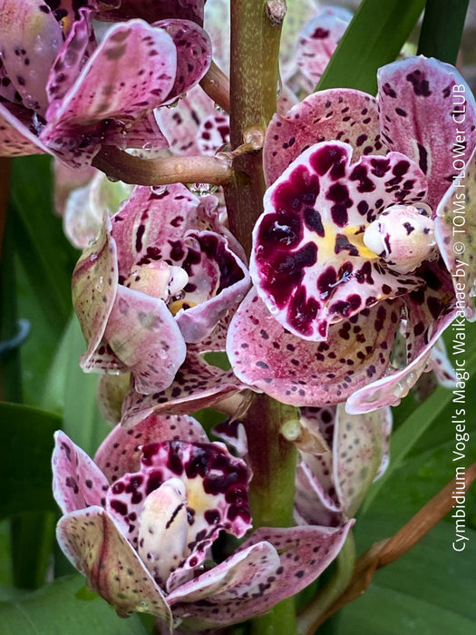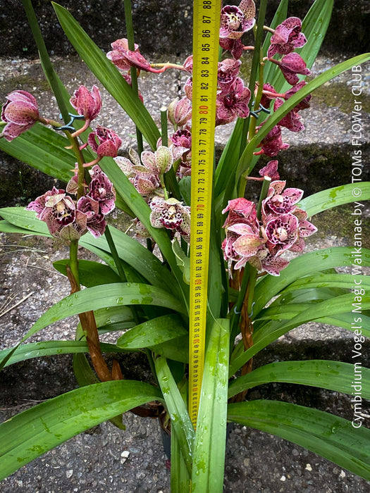 Cymbidium Vogel's Magic Waikanae is a captivating orchid hybrid celebrated for its striking floral displays. This variety produces abundant, medium to large-sized flowers that typically feature a harmonious blend of soft pastel hues, often with intricate patterns or markings on the petals and lip. The blooms are known for their longevity, making them a favorite among orchid enthusiasts and floral arrangers.