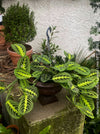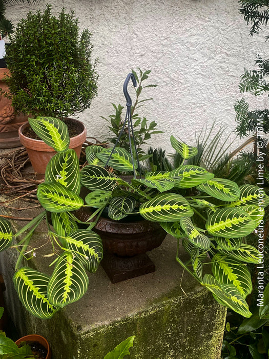 Maranta Leuconeura Lemon Lime from own propagation of head cuttings; potted in self-mixed permeable organic substrate; repotting only desired in 1-2 years; simply beautiful leaves with a unique leaf pattern; creeping or hanging with time; originating from Brazil; with time it becomes quite bushy (can then be divided again or cut back); the plant is rather for a semi-shady location (no direct sun); the plant is rather for a half shady location (no direct sun); avoid waterlogging; 3-5 times a week to shower off the leaves is very good for the plant; grown WITHOUT fertilizer, therefore robust and top healthy (100% organic quality before quantity!); much joy with your new unique Maranta Leuconeura Lemon Lime!