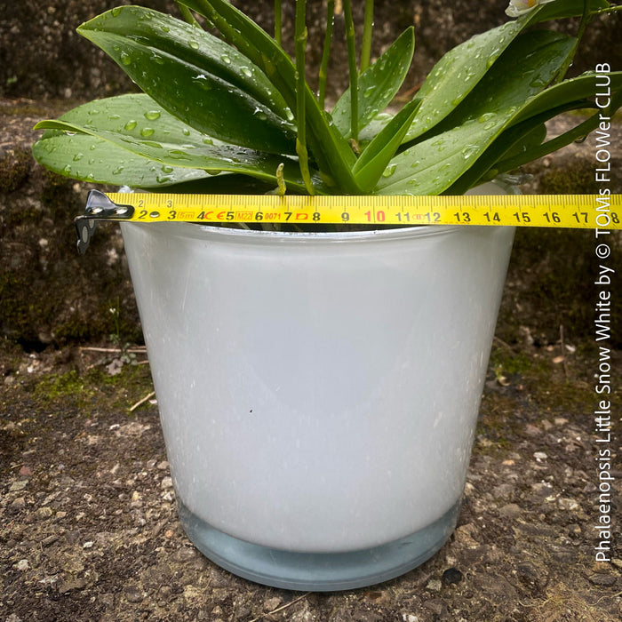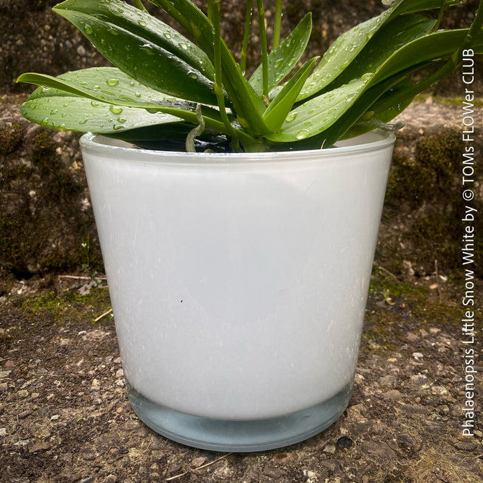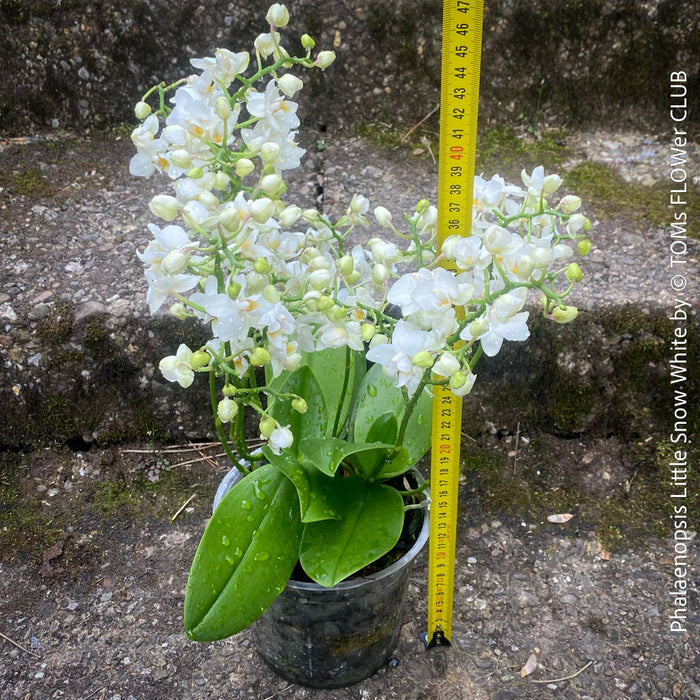 Phalaenopsis Little Snow White is a stunning orchid hybrid that enchants with its elegant small flowers in pure white tones. This fully established plant is organically grown ensuring a robust and healthy specimen. While not hardy, it thrives in light to semi-shaded locations (avoid direct sunlight) and is potted in well-drained orchid substrate. Repotting is only necessary after 1-2 years. To maintain optimal humidity, spray frequently with (rain) water. Enjoy your new orchid beauty - Phalaenopsis Little Snow White!